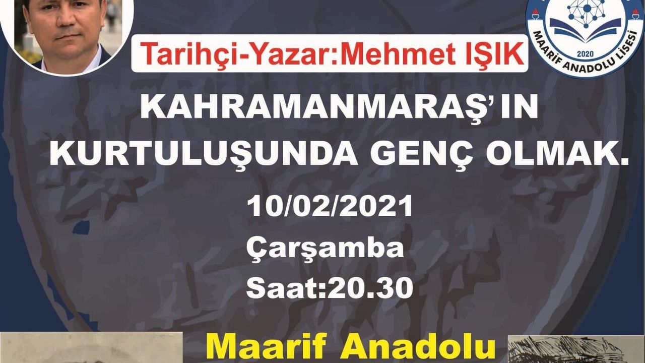 Konuşmacı Mehmet IŞIK; programa davet edildiği için teşekkür edip, Kahramanmaraş işgali ve Kahramanmaraş’ın işgalden kurtuluşu hakkında önemli bilgiler verdi.