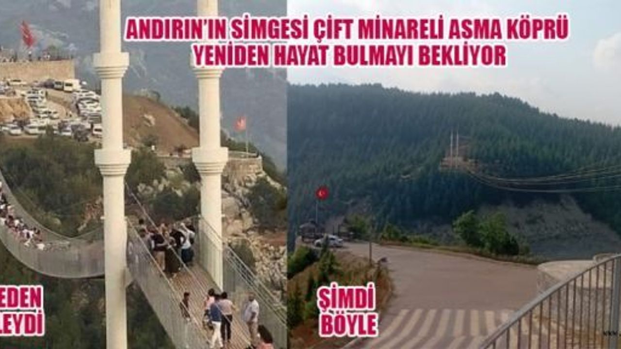 Kahramanmaraş'ın tarihi ve doğal güzellikleriyle ünlü ilçesi Andırın, yıllardır ilgiyle ziyaret edilen Çift Minareli Asma Köprü ile bir döneme damgasını vurmuştu. Tufanpaşa ve Yeni Mahalle’yi birbirine bağlayan bu görkemli yaya köprüsü, sadece bir ulaşım aracı değil aynı zamanda Andırın’ın simgesi, hafızalara kazınan bir turizm değeriydi.