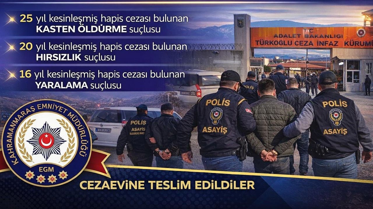 İl Emniyet Müdürlüğü Asayiş Şube Müdürlüğü ekiplerince gerçekleştirilen çalışmalar neticesinde; “kasten öldürme” suçundan 25 yıl hapis cezası bulunan M.K., “hırsızlık” suçundan 20 yıl hapis cezası bulunan H.K. ve “yaralama” suçundan 16 yıl hapis cezası bulunan G.A. isimli şahıslar yakalandı.