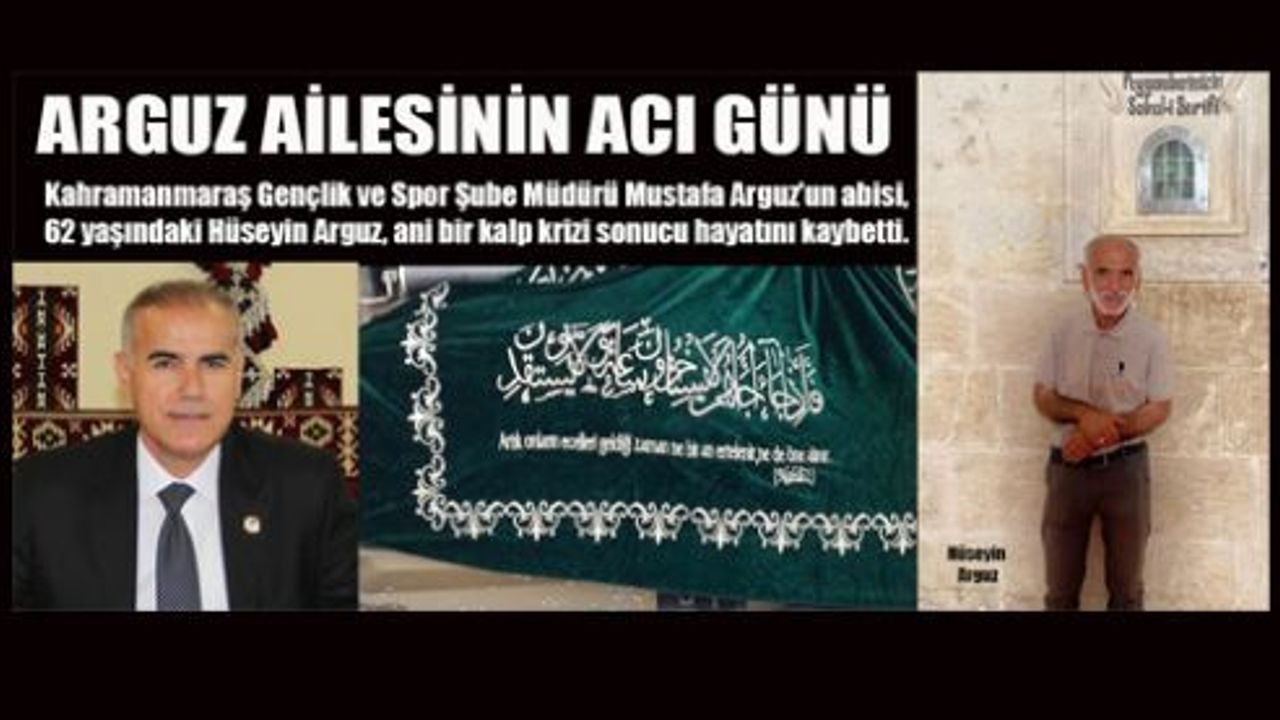 Kahramanmaraş Gençlik ve Spor Şube Müdürü Mustafa Arguz’un abisi, 62 yaşındaki Hüseyin Arguz, ani bir kalp krizi sonucu hayatını kaybetti. Bu beklenmedik kayıp, Arguz ailesi ve çevresinde derin bir üzüntü yarattı.
