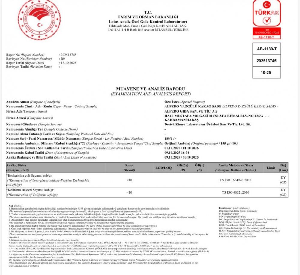 Alpedo Dondurma İşletme Müdürü Erdoğan Bayır, yaptığı açıklamada, iddiaların gerçeği yansıtmadığını belirterek şu ifadeleri kullandı: “Son günlerde bazı basın organlarında yer alan laboratuvar sonuçlarıyla ilgili iddialar tamamen asılsızdır. Bahsi geçen ürünler tamamen ihracat amacıyla üretilmiştir. Üretim sonrasında kendi laboratuvarımızda yapılan analizlerde sonuçlarımız uygundu. Ardından Kahramanmaraş Sütçü İmam Üniversitesi’ne (KSÜ) teyit amaçlı olarak numunelerimizi gönderdik. Ancak analiz sürecinde yaşanan gecikme ve numunelerin bekleme koşullarına bağlı olarak farklı sonuçlar çıkmıştır.”