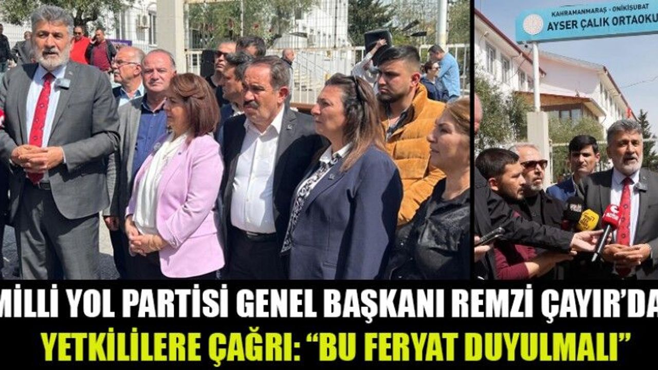 Açıklamaya, Çayır’ın yardımcıları Nida Gönen ve Halil Toraman ile Milli Yol Partisi Kahramanmaraş İl Başkanı Ali Akkurt, Onikişubat İlçe Başkanı Fatih Bulut, Dulkadiroğlu İlçe Başkanı Osman Kurtuoğlu, ile yönetim kurulu üyeleri ve parti kadın kolları üyeleri de katıldı.
