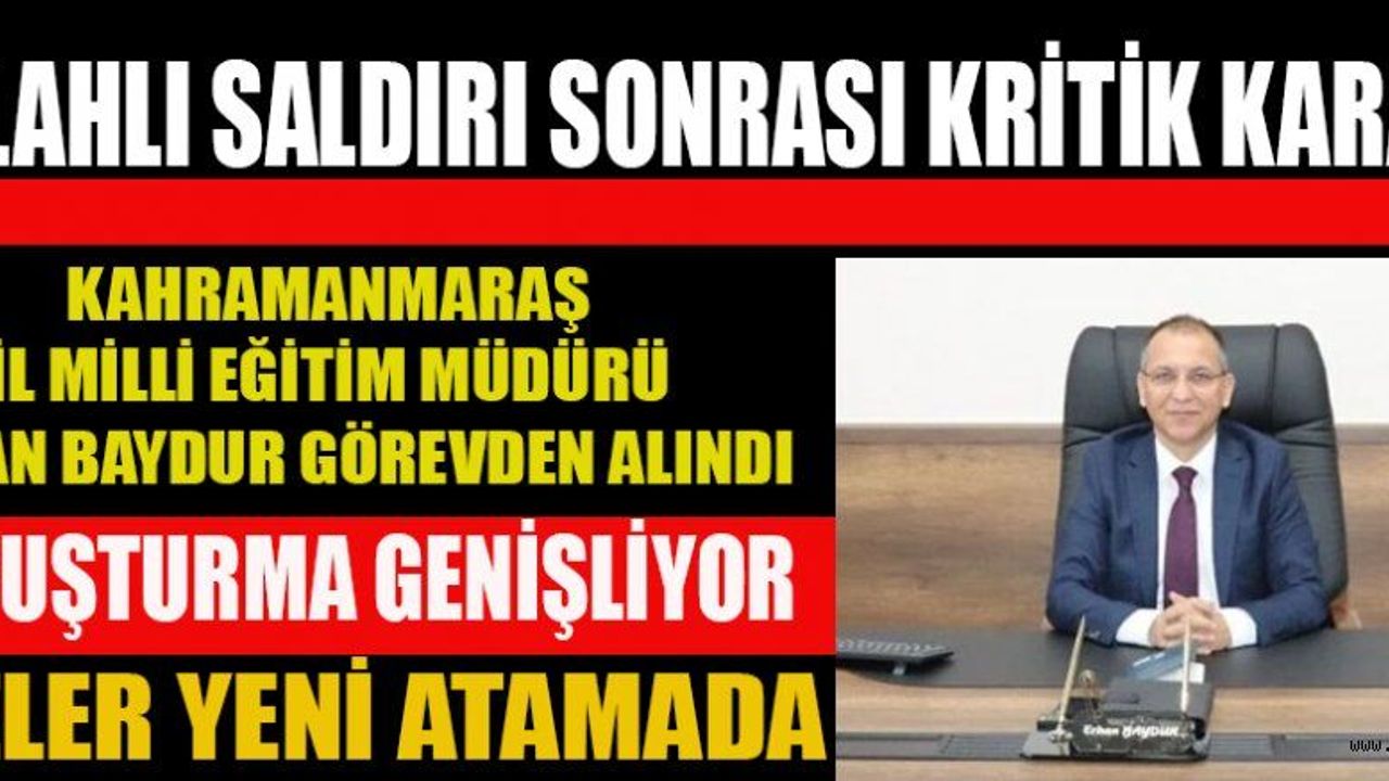 15 Nisan’da Onikişubat ilçesinde bulunan Ayser Çalık Ortaokulu’nda meydana gelen silahlı saldırının ardından başlatılan inceleme süreci yeni gelişmeleri beraberinde getirdi. Olay sonrası kamuoyunda oluşan tepkiler ve yürütülen idari soruşturma kapsamında İl Milli Eğitim Müdürü Erhan Baydur’un görevden alınmasına karar verildi.