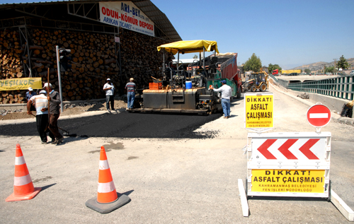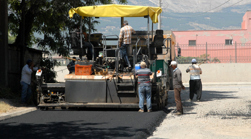 Devlet Su İşleri tarafından yapılmakta olan sulama kanalının geçtiği Odun ambarları bölgesinde asfalt çalışmalarına başlayan ekipler yoğun sıcağa aldırış etmeden sıcak asfalt serimini gerçekleştiriyorlar.