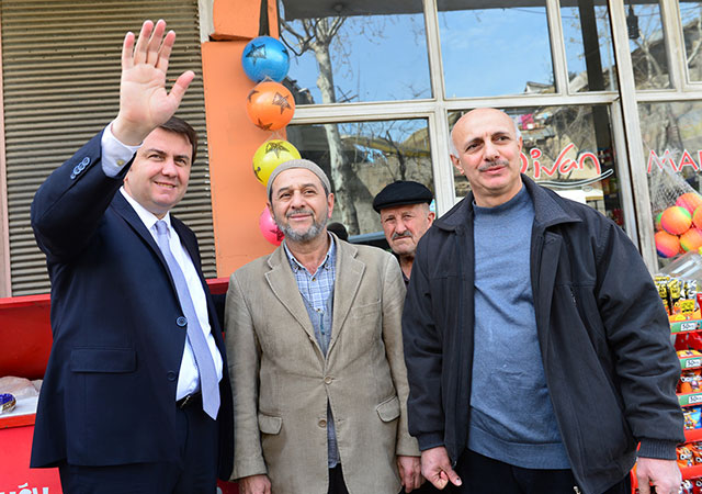 Daha sonra Divanlı Mahallesi esnaflarını da ziyaret eden Başkan Erkoç, burada esnaflarla sohbet etti.