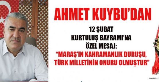 Kuybu, mesajını şu şekilde sonlandırdı: “Bu duygu ve düşüncelerle tüm Kahramanmaraşlıların 12 Şubat Kurtuluş Bayramı’nı kutluyor, başta şehitlerimizi rahmetle anıyor, gazilerimize sağlık ve uzun ömürler diliyorum. Kahramanmaraş’ın gösterdiği kahramanlık duruşu, Türk milletinin onuru olmaya devam edecektir.”