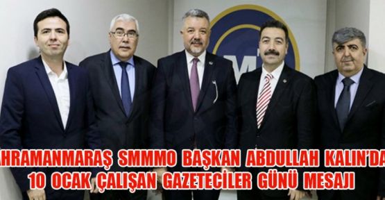 Kahramanmaraş ve ülke gelişimine katkı sağlayan tüm basın çalışanlarının, gece-gündüz demeden emek verdiğini belirten Kalın, 10 Ocak Çalışan Gazeteciler Günü’nü kutlayarak, hayatını kaybeden basın mensuplarına rahmet diledi; "Başta Kahramanmaraş'ımız olmak üzere ülkemizin gelişimine katkı sağlayan gece-gündüz demeden, zaman mefhumu gözetmeden çalışan tüm basın çalışanlarımızın 10 Ocak Çalışan Gazeteciler Günü’nü gönülden kutluyor, aramızdan ayrılan basın mensuplarımıza Allah'tan rahmet diliyorum."