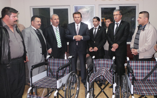 Başkan Abdulhamit Yeniceli, parti binasındaki ziyaretinde hem Erkoç’a hayırlı olsun ve başarı dileğinde bulundu, hem de yönetim kurulu ile birlikte 3 tekerlekli sandalye ihtiyaç sahiplerine verilirken, Erkoç da parti binası girişinin engellilere uygun hale getirileceği sözünü verdi.