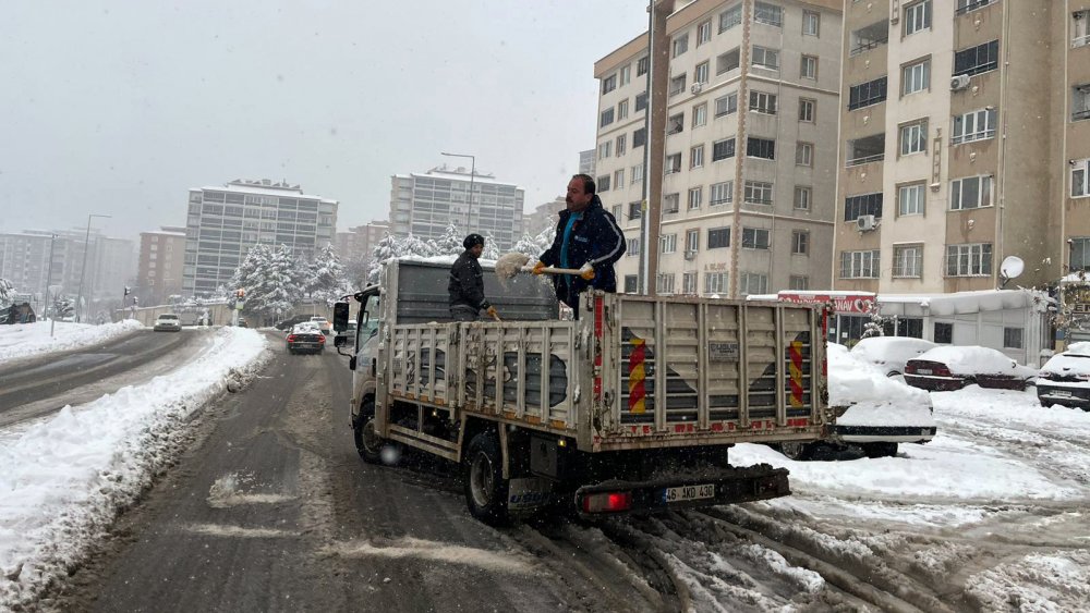 Şehir genelinde etkisini sürdüren yoğun kar yağışıyla birlikte Büyükşehir Belediyesi, ulaşımın aksamaması ve günlük yaşamın olumsuz etkilenmemesi için sahadaki çalışmalarını aralıksız sürdürüyor. Ana arterler başta olmak üzere cadde, bulvar ve yoğun kullanılan güzergâhlarda kar küreme, tuzlama ve solisyon uygulamaları gece gündüz devam ederken, tüm birimler koordinasyon içinde hareket ediyor.