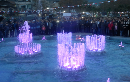 Belediye Bando müziği eşliğindeki etkinlikte, meydana kazandırılan sesli ve ışıklı süs havuzu ve çeşitli su gösterileri açılış sırasında konukların ilgisini çekerken, arka fonda çalana müzik eşliğinde suyun ritmiyle birlikte hareket etmesi ve farklı renkler oluşturması, Kent Meydanında farklı bir görüntünün oluşmasını sağladı.