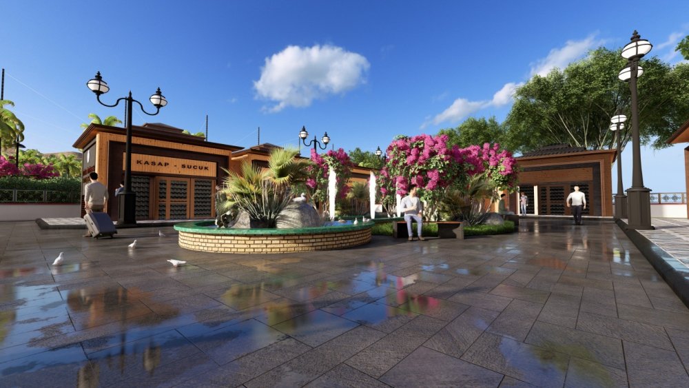 Doğaya uyumlu ahşap tasarımıyla dikkat çeken ve 8 iş yerinden oluşması planlanan Doğal Ürünler Satış Çarşısı, ilçe üreticilerinin doğal, organik ve el emeği ürünlerini doğrudan vatandaşlarla buluşturabileceği modern bir pazar alanı oluşturacak.
