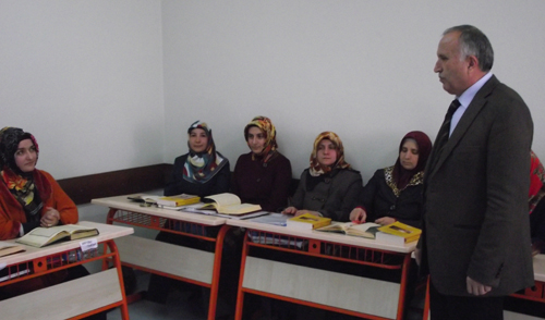 Kahramanmaraş Onikişubat ilçesine bağlı Yaşar ve Şerife Gölcü kız kuran kursu salonunda eğitmen il müftüsü Muhammed Gevher’in altı ay boyunca bizzat kendisinin vereceği Tashih-i Huruf kursuna 25 öğretmen katılıyor.