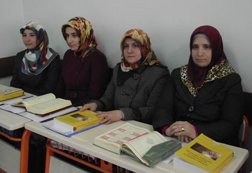 Kursta, Kuran-ı daha güzel okumak, harflerin mahreçleriyle beraber çıkarmak için titiz bir uğraşı veriyorlar.