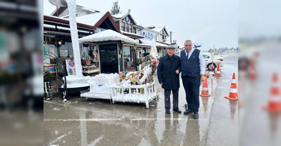 MADO Yönetim Kurulu Başkanı Mehmet Kanbur, Madoevi önünde, işletmenin şef garsonu olan Veli Arslan ile karın yağışını seyrederken, MADO ailesi oarak yeni yıl sebebiyle herkese sağlık ve huzur yanında mutluluk dileklerinde bulundu.