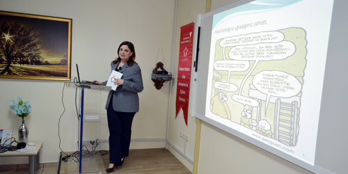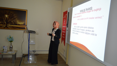 Uzmanlar Sosyolog-Aile Danışmanı Zeliha Armut ve Psikolog-Aile Danışmanı Ayşe Didem Dedeoğlu tarafından katılımcılar, şiddetin türleri, bölgelere göre aile içi şiddetin dağılımı, toplumumuzda kültürel normlarla şiddetin öğrenilmesi, şiddet uygulayan kişilerin özellikleri, şiddete yol açan kontrolsüz öfke ve şiddetin önlenmesi için öfke kontrol yöntemleri konularında bilgilendirildi.
