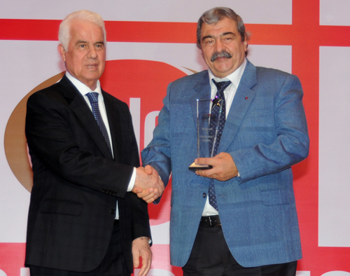 KKTC Cumhurbaşkanı Derviş Eroğlu, Sanko Holding’in ödülünü, Yönetim Kurulu Başkanı Abdulkadir Konukoğlu’na takdim etti.