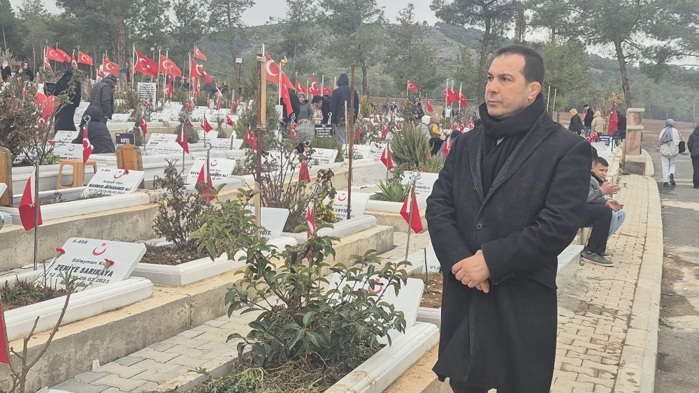 Depremle birlikte deprem krizini mükemmel yürüten, tertip ve düzen noktasında ilk kez gediği şehitlik mezarlığı için, halen yine depremde büyük yıkım yaşayan ve en çok can kaybının yaşandığı Hatay Büyükşehir Belediyesi Genel Sekreterliği görevini yürüten Hayrettin Güngör’e teşekkür etti.
