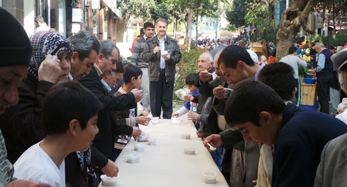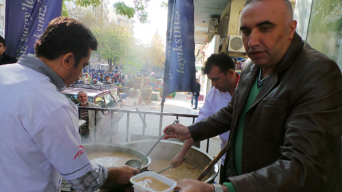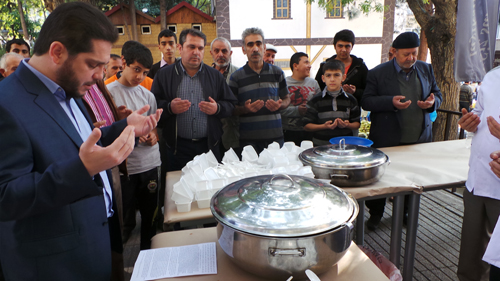 Şirikçi’nin gelenek haline getirdiği aşure kazanı başında önce Kur’an okundu, arkasından semt pazarı ve çarşı esnafına dağıtıldı.