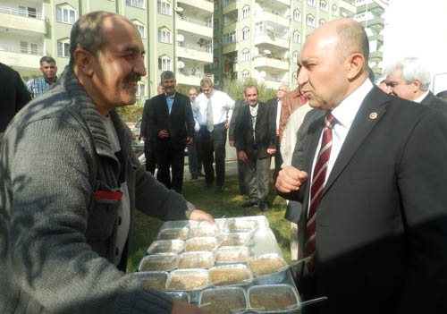 Engelli vatandaşlar kadar, aşureye katılan vatandaşların Fatih Erkoç’a ilgisi çoktu.