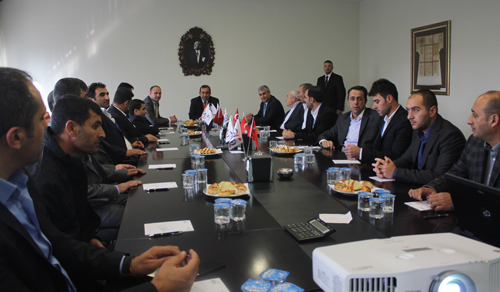Van Ticaret ve Sanayi Odası (VATSO) Meclis Üyeleri, Meclis Başkan Yardımcısı Bülent Harman başkanlığında, KMTSO Yönetim Kurulu Başkan Vekili Kadir Gülkesen ile görüşerek Kahramanmaraş’ı tanımak ve Kahramanmaraş’ın sanayie dayalı büyüme modelini örnek almak üzere geldiklerini ifade etti. Van Ticaret ve Sanayi Odası Meclis Başkan Yardımcısı Bülent Harman, “Yönetim Kurulumuzun aldığı karar ve yaptığı görüşmeler doğrultusunda ilk iş gezimizi gerçekleştiriyoruz. Özellikle otomotiv ve gıda sektöründeki üyelerimizin yeni teknolojileri yerinde görmeleri, ikili görüşmeler yapmaları için çok önemli bir fırsat olmuştur. İş gezimize 30 üyemizle birlikte geldik. Bu iş gezisinin ilimiz sanayisi ve ticareti açısından verimli olacağına inanıyoruz.” dedi.