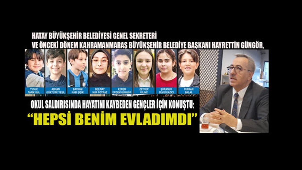 Hatay Büyükşehir Belediyesi Genel Sekreteri ve önceki dönem Kahramanmaraş Büyükşehir Belediye Başkanı Hayrettin Güngör, okul saldırısında hayatını kaybeden gençler için konuştu.