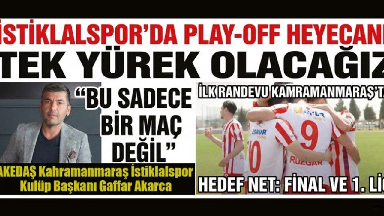AKEDAŞ Kahramanmaraş İstiklalspor Kulüp Başkanı Gaffar Akarca, 30 Nisan Perşembe günü oynanacak kritik mücadele öncesinde taraftarlara çağrıda bulundu. Akarca, ilk maçta Mardin 1969 Spor ile karşılaşacaklarını hatırlatarak, tribün desteğinin belirleyici olacağını vurguladı. “Bu süreçte en büyük gücümüz taraftarımız olacak.