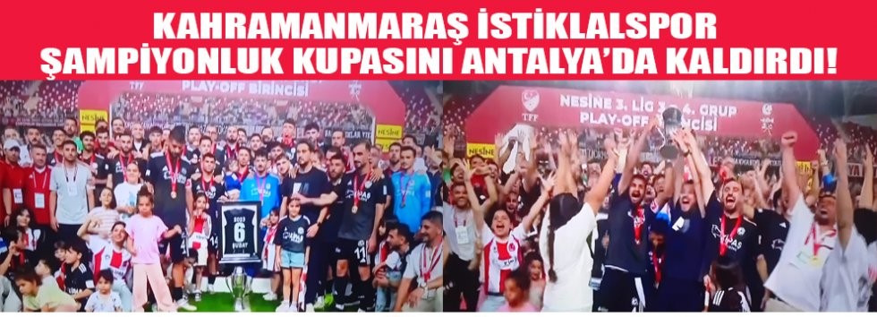 NOT: Dün Antalya’da oynanan 2. Lige yükselme maçında, rakibi Ayvalıkgücü’nü 3-1 yenerek Maraş halkını sevince boğan, Antalya’da tarih yazan ve şampiyon olan takımımızı, yani İstiklalspor’u kutluyorum. Başkanından malzemecisine, teknik adamından futbolcusuna, taraftarından şehir halkına kadar herkesin emeği olan şampiyonluk hayırlı olsun!