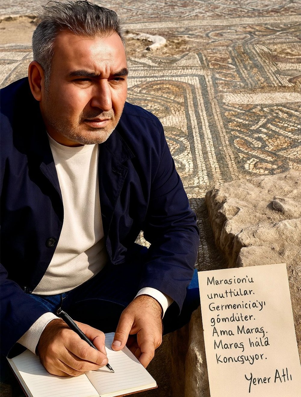 Atlı, eserinde yalnızca bir kentin değil; bir medeniyetin, bir sanat anlayışının ve bir halkın kırılan zamanını anlatıyor. Mozaik ustalarının özenle yerleştirdiği her taş, kentin yaşanmışlıklarına tanıklık ederken; depremle sarsılan Germenicia, sessizliğe gömülen bir şehrin hikâyesi olarak sayfalarda yeniden canlanıyor.