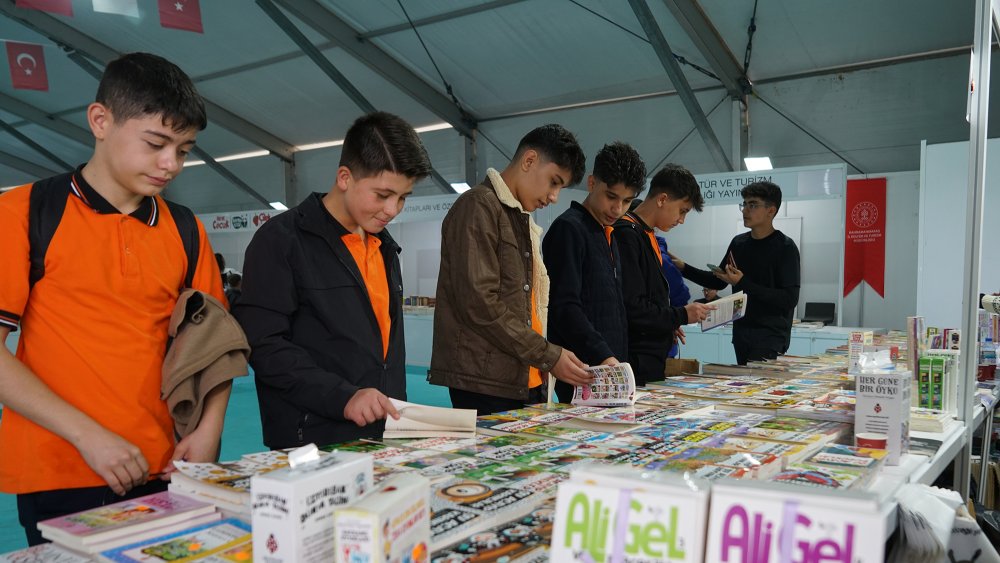 Her gün on binlerce kitapseveri ağırlayan fuar, bu yıl da öğrencilerin ziyaretleri ile renkli görüntülere sahne olmaya devam ediyor. Kitaba ulaşma noktasında her öğrenciye fırsat eşitliği sunmak için Ilıca Yeniyapan Ortaokulu öğrencilerini fuarla buluşturan Büyükşehir Belediyesi, kırsalda yaşayan öğrencilerin kitapların büyülü dünyasını keşfetmesine imkân tanıdı.