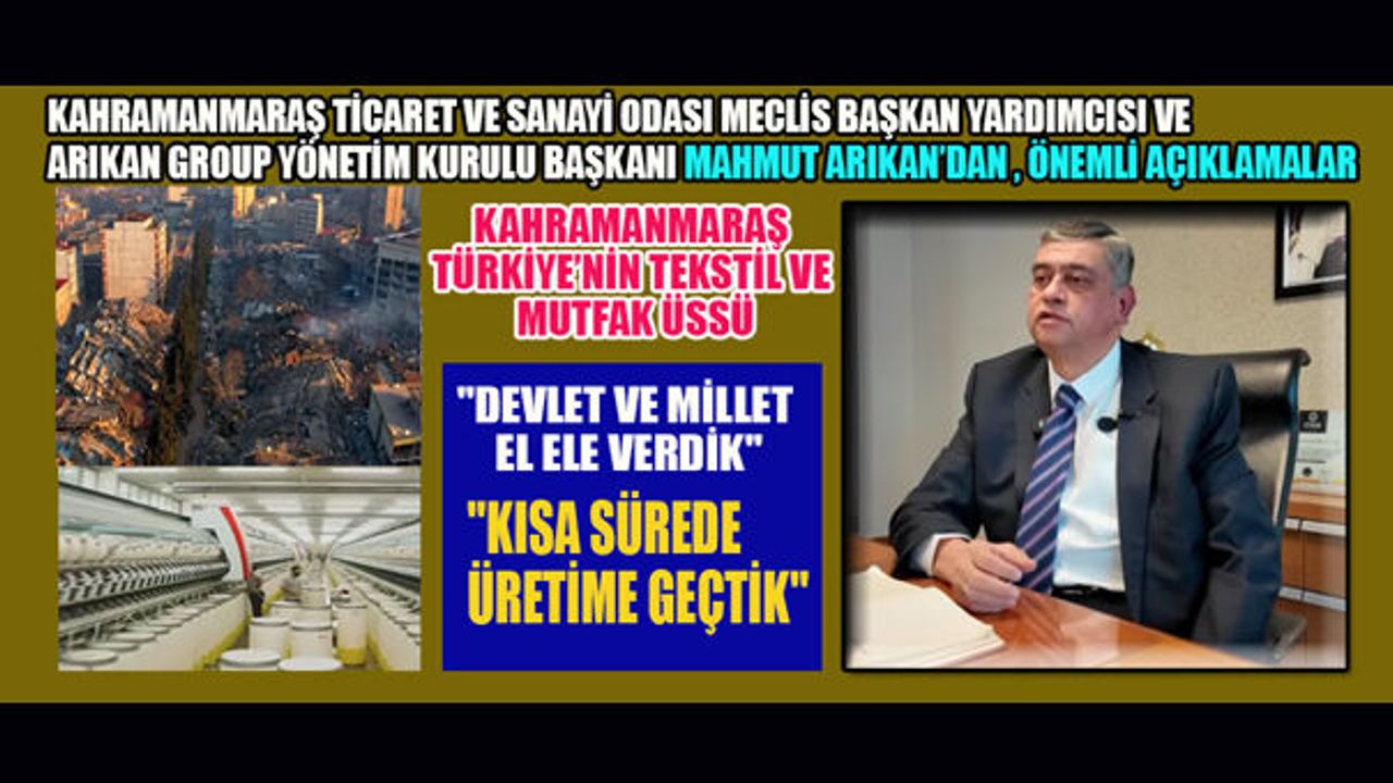 MAHMUT ARIKAN: KAHRAMANMARAŞ TÜRKİYE’NİN ÜRETİM ÜSSÜ