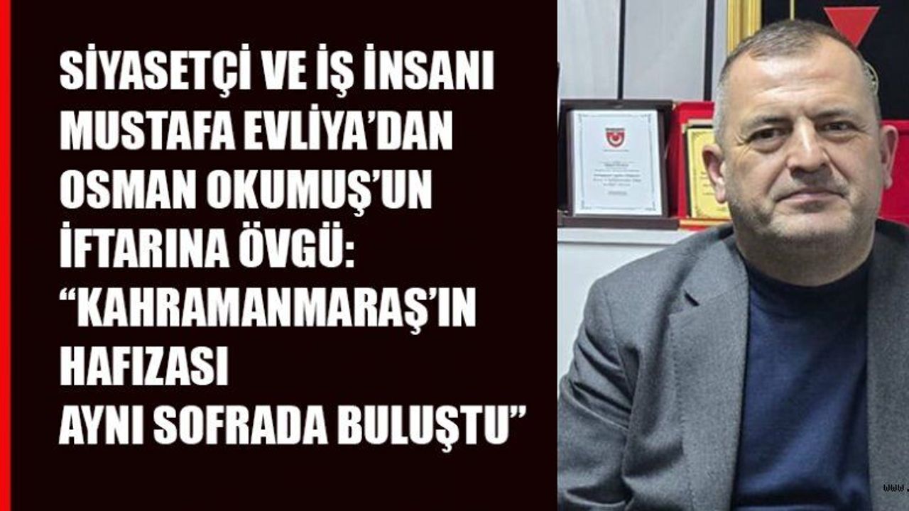 İftar programına ilişkin açıklamalarda bulunan Mustafa Evliya, organizasyonun önemine vurgu yaparak şu ifadeleri kullandı: “Kahramanmaraş’ımızın siyaset, bürokrasi, iş ve spor dünyasından kıymetli isimleriyle aynı sofrada buluştuk. Bu buluşma sadece bir iftar değil, aynı zamanda şehrimizin hafızasının bir araya geldiği çok değerli bir organizasyon oldu.”