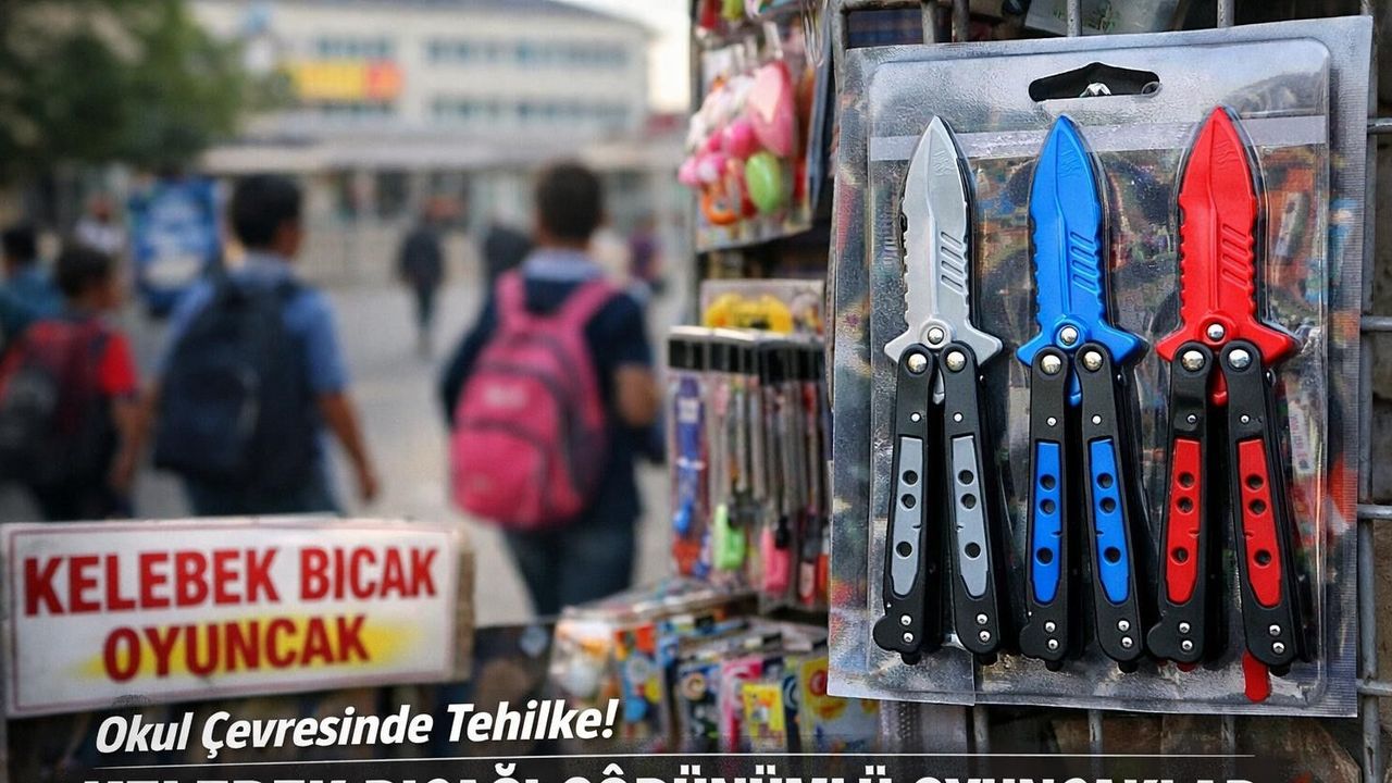 Edinilen bilgilere göre, okul çevresindeki bazı bakkallarda satılan ve görünümüyle gerçek kelebek bıçaklarını andıran oyuncaklar, açılıp kapanma mekanizmasıyla dikkat çekiyor. Genellikle plastik ya da hafif metal malzemeden üretilen bu ürünlerin, çocuklar tarafından ilgi görmesi güvenlik riskini de beraberinde getiriyor.