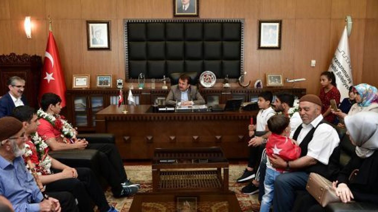 Kahramanmaraş Büyükşehir Belediyesi önünde davul zurna eşliğinde karşılanan şampiyonları başkanlık makamında kabul eden Başkan Erkoç, Güneyin Kırkpınar’ı olarak anılan Kahramanmaraş’ın bu ünvanı fazlasıyla hak ettiğini söyledi.