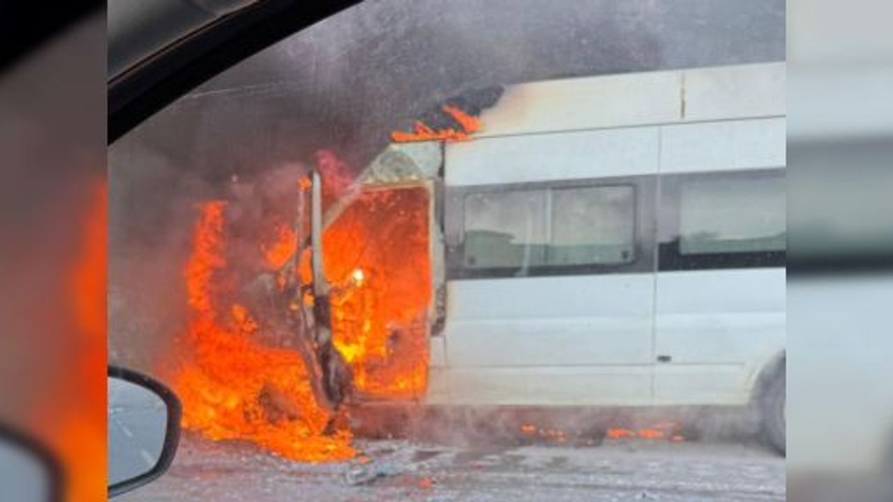 Sürücünün durumu fark etmesiyle bölgeye itfaiye ekipleri sevk edildi. İtfaiye ekiplerinin zamanında müdahalesine rağmen minibüs, kullanılmaz hale gelirken, olayla herhangi bir yaralanmanın olmadığı öğrenildi.