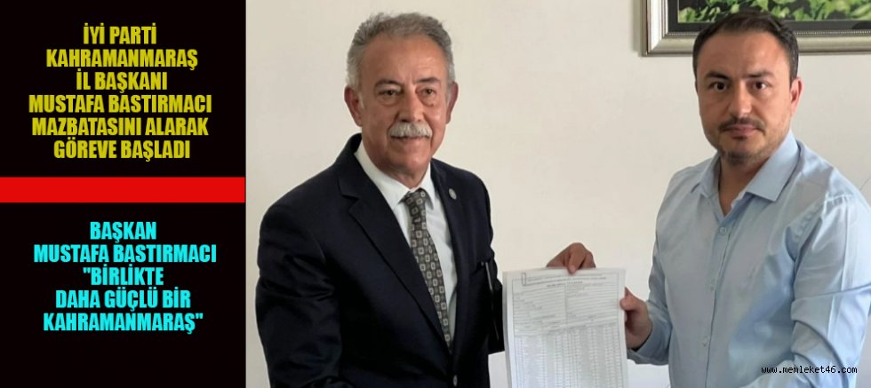 Mazbatasını almasının ardından yaptığı açıklamada Mustafa Bastırmacı, görevi sadece bir makam olarak görmediklerini, bunun bir sorumluluk, emanet ve hizmet bilinciyle kabul edilmesi gereken bir görev olduğunu vurguladı. Bastırmacı, Kahramanmaraş'taki siyasetin dilinin yeniden nezaket, samimiyet ve milletin sesiyle buluşması gerektiğini söyledi; “Bugün burada, demokrasiye olan inancımızın bir yansıması olarak, İYİ Parti Kahramanmaraş İl Başkanlığı görevimizi resmen teslim alıyoruz. Bu görevi kabul ederken, tüm halkımıza hizmet etmek, sorunları çözmek ve halkımızın sesi olmak adına sorumluluğumuzu yerine getireceğimizin sözünü veriyoruz,” dedi.