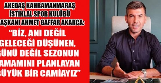 Başkan Akarca, açıklamasının devamında Kahramanmaraş halkına da özel bir çağrıda bulundu. Bu yürüyüşün yalnızca sportif bir başarı hedefi taşımadığını ifade eden Akarca, “Çıktığımız bu yol sadece bir futbol yolculuğu değil şehrimizin onurunu, gururunu ve geleceğini temsil eden bir mücadeledir. Tribünde, sokakta, evde, iş yerinde bu formayı yüreğinde taşıyan herkesin desteği, bu yürüyüşte bize güç katmaktadır. Maddi ve manevi her destek, sahada bir adım daha ileri gitmemizi sağlamaktadır” şeklinde konuştu.