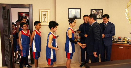 Basketbol takımlarımız, Antrenörleri Veli Erbaşlı ve Gençlik Spor Kulübü Yönetim Kurulu üyesi Hüseyin Eralp Gençlik Hizmetleri ve Spor İl Müdürü Ali İhsan Kabakçı’yı Makamında ziyaret ettiler. İl Müdürü Kabakcı Sporcuları ve Antrenörlerini tebrik ederek. Başarılarının devamını temenni etti.