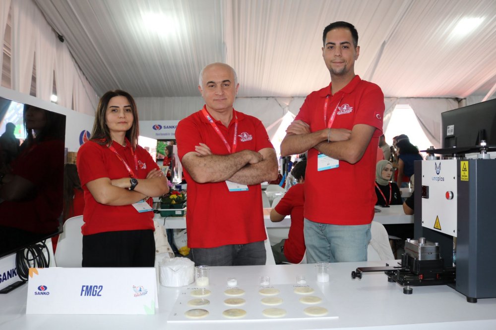 SANKO Okulları Öğretmenleri Fatih Mehmet Günaydın, Gülden Dilsiz ve Cumacan Kaan Koç hazırladıkları “Plastiklerin Geri Dönüşüm Kalitesini Artırma” projesiyle Çevre ve Enerji Teknolojileri alanında Mezunlar Kategorisi’nde yarışıyor.