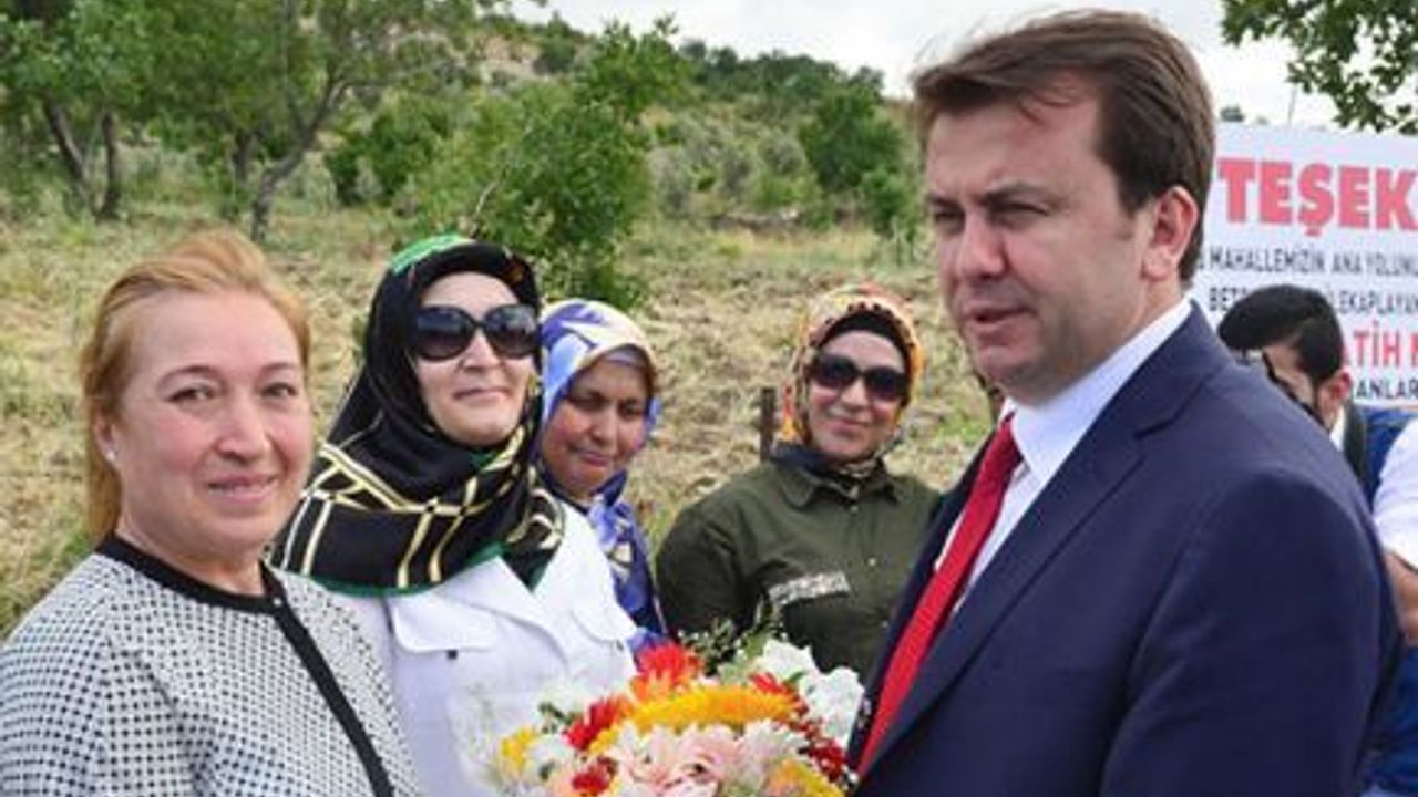 Bahse konu mahalleleri birbirine bağlayan grup yolu kavşağına dikilen tabelada: “18 Mahallemizin ana yolunu ilçemizde bir ilki gerçekleştirerek beton asfalt ile kaplayan Büyükşehir Belediye Başkanımız Fatih Mehmet Erkoç’a şükranlarımızı sunuyoruz” yazısı ve 18 mahallenin ismi yer aldı.