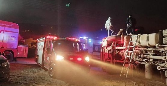 Kahramanmaraş-Gaziantep yolu üzerinde meydana gelen zincirleme trafik kazasında hububat yüklü 3 tır çarpıştı, çarpışmanın ardından araçlarda yangın çıktı.