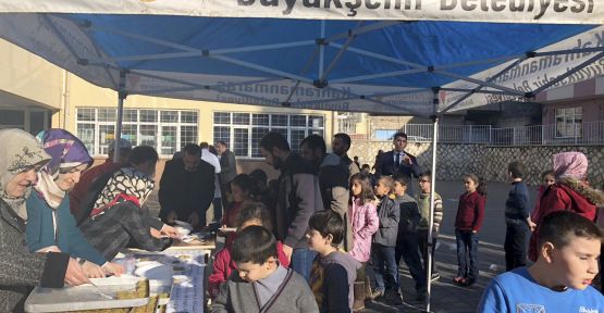 Sosyal Hizmetler Şube Müdürlüğü tarafından hazırlanan çorba ve tatlılar Turan İlkokulu bahçesinde öğrencilere dağıtıldı.