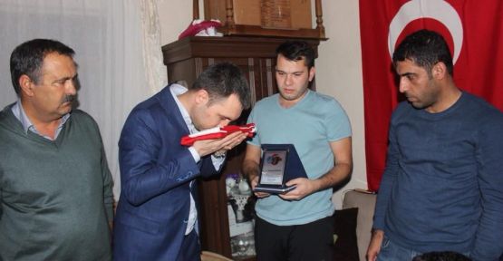 Kahraman gazi Muammer Gürocak’a teşekkür plaketi ve Türk Bayrağı hediye eden Ülkü Ocakları İl Başkanı Hüseyin Kayış; “Bu Vatan için fedakârlık yaparak bedel ödeyen, önce vatanım, milletim ve bayrağım diyen sizler başımızın tacısınız. Siz, bütün Ülkü Ocaklıların kalbinde yer edinerek, gönüllerinde bayraklaştınız. Ben, Ülkü Ocakları adına size bir kez daha teşekkür ediyorum. Allah sizlerden razı olsun. Biliyoruz ki geçmişte olduğu gibi bugünde Kahraman Türk Ordusu muzaffer olup, destanlar yazmaya devam edecektir” dedi.