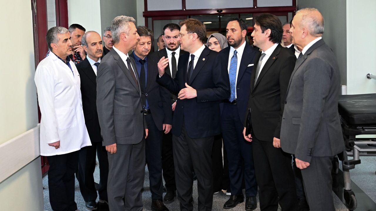 Kahramanmaraş Sütçü İmam Üniversitesi Rektörü Prof. Dr. İbrahim Taner Okumuş ve hastane yönetimi eşliğinde tedavi altındaki öğrencilerle bir araya gelen Yerebakan, yaralıların sağlık durumuna ilişkin yetkililerden bilgi aldı.